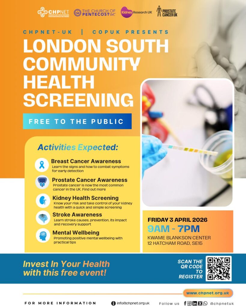 That’s why CHPNet‑UK, in partnership with other organisations and local ICBs, is hosting a FREE Community Health Screening, created especially with our community in mind.